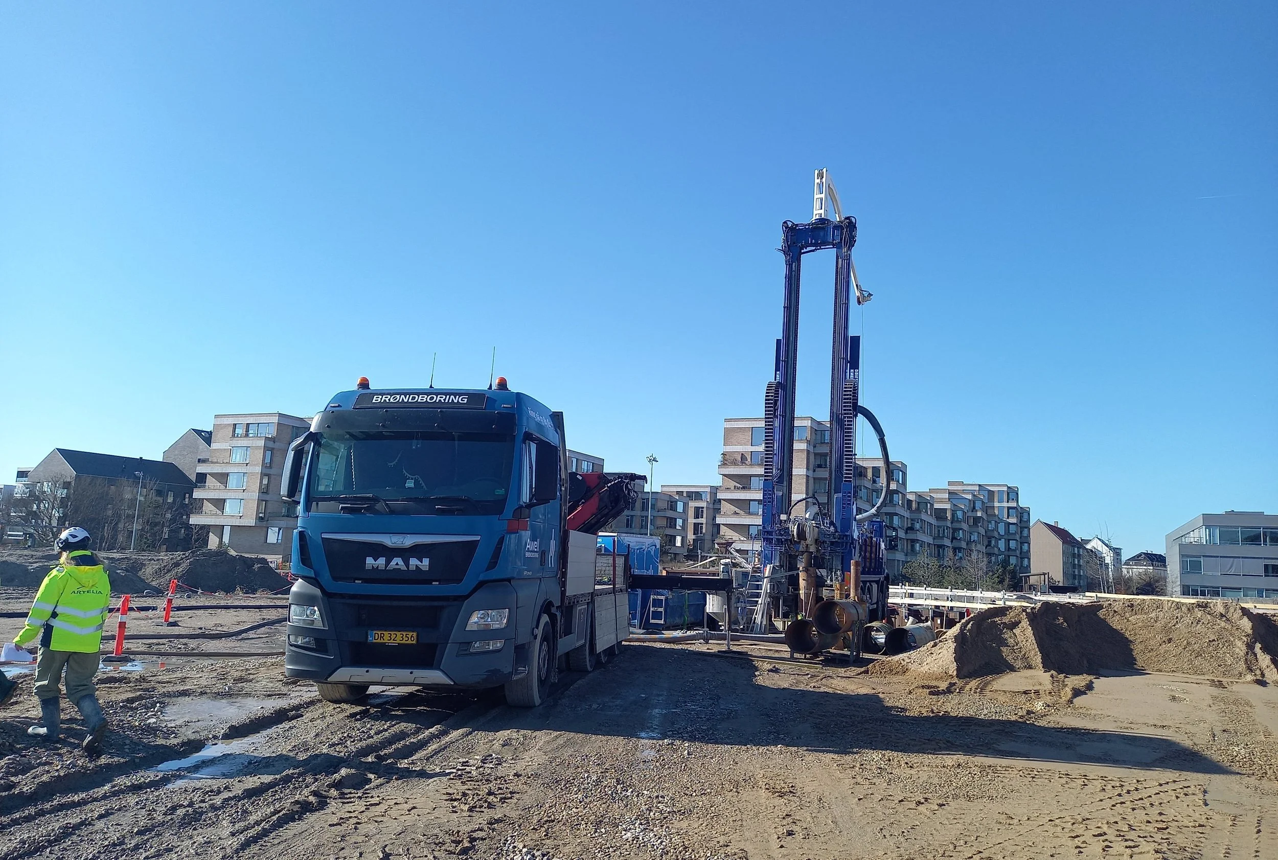 Borerig ved byggegruben, marts 2026 (Artelia)